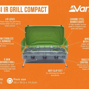 If you are a keen outdoor chef, the Vango Combi IR Grill Compact is ideal. This 2-burner, compact stove with infrared grill offers high heat output whilst remaining low on fuel consumption. With compact easy storage and anti-slip feet, this grill is the perfect partner for camping and dining al fresco.