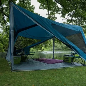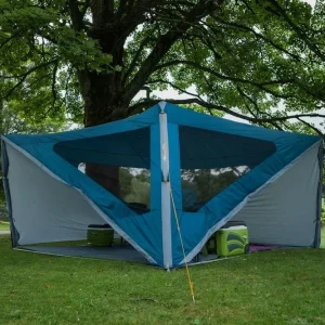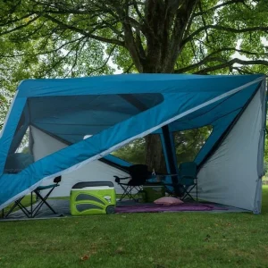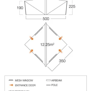 The Trigon AirHub is an ideal gathering space for groups on the campsite, serving as a central kitchen tent or communal shelter. Its innovative design features a central inflatable AirBeamĀ® and two king poles, creating a versatile event-style shelter. With four openings, you can select the door based on wind direction, while mesh windows provide additional ventilation. Crafted from our Sentinel Eco fabric made from recycled single-use plastics, the Trigon offers a sustainable outdoor relaxation spot.