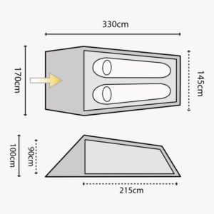 DIMENSIONS: Outer: 330cm x 170cm x 100cm Inner: 215cm x 145cm x 90cm Pole width: 7.9mm