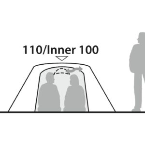 The combination of dome style and short transverse ridge pole offers flexible living, cooking and storage space with excellent internal height and width that allows the two occupants to sit side by side. The twin doors allow each camper easy access and options in door opening to shelter from the wind as well as delivering cross ventilation. Locking tips and twin eyelets in sturdy webbing secure the internal poles with the ridge pole.