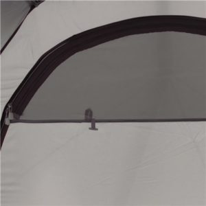 The combination of dome style and short transverse ridge pole offers twin-porch flexible living, cooking and storage space with excellent internal height and width for three occupants. The design includes options for opening outer doors to allow easy sheltered access, as well as delivering cross ventilation and great views out protected from the wind. Locking tips and twin eyelets in sturdy webbing secure the internal poles with the ridge pole.