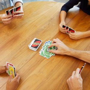 UNO® is the classic card game that’s easy to pick up and impossible to put down! Players take turns matching a card in their hand with the current card shown on top of the deck either by color or number. Special action cards deliver game-changing moments as they help you defeat your opponents. These include Skips, Reverses, Draw Twos, Wild and Draw Four Wild cards. You’ll find 25 of each color (red, green, blue, and yellow), eight Wild cards, three Customizable cards and one Special Rule card inside the 112-card deck. If you can’t make a match, you must draw from the central pile! And when you’re down to one card, don’t forget to shout “UNO!” The first player to rid themselves of all the cards in their hand before their opponents wins. It’s Fast Fun for Everyone!